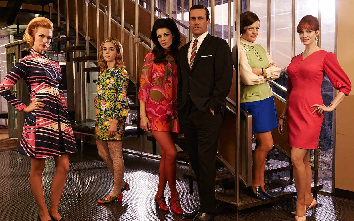 Mad Men costume designer Janie Bryant captures the era very accurately with many looks that were so California and ’60s-centric in those days: mini-skirts, plaid sport coats, bell-bottom pants, tie-dyed t-shirts, military surplus jackets, headbands, armbands and very psychedelic prints.