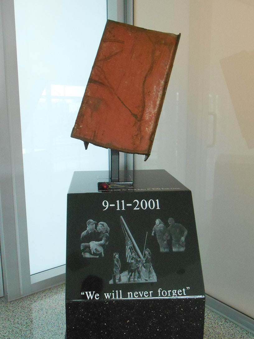 This piece of twisted steel girder, originally part of the North Tower #1 at the World Trade Center in New York City, is housed and on display at the Santa Monica Public Safety Facility. It is a tangible memory of a terrible day in our country.